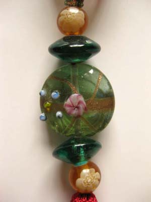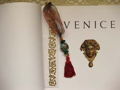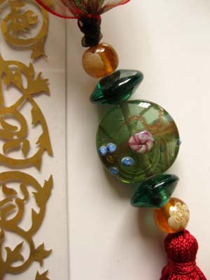 ヴェネツィアンビーズ栞(グリーン混赤1)