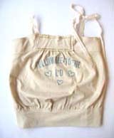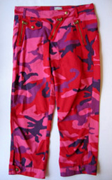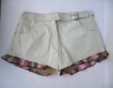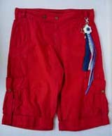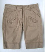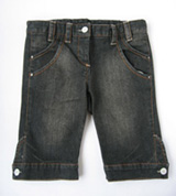 色落ちブラックデニムのバミューダはとてもきれいなラインが出ます。フロント2段ポケットのラインストーン入りスタッズと凝った切り替えが光ります。10Aまではウェストにアジャスターが入っています。